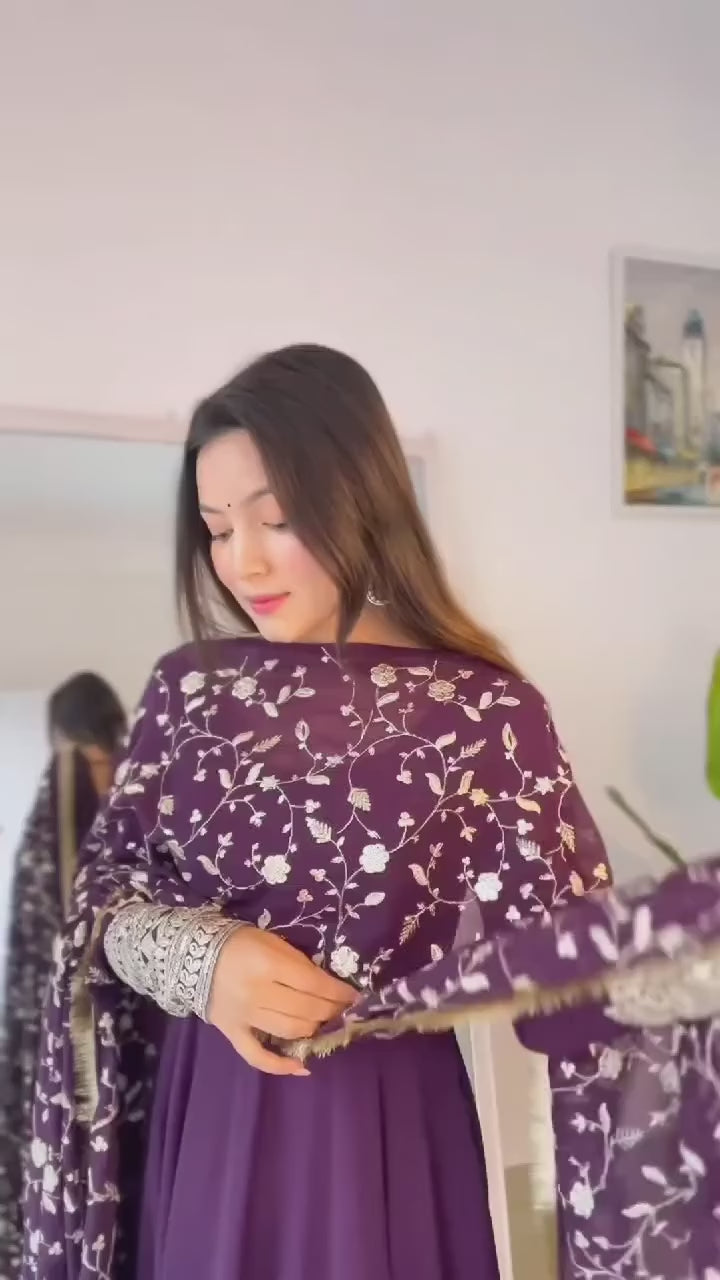 Color: Rich maroon Anarkali gown with a beautiful flared shape