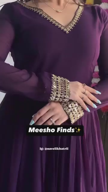 • Design: Flared Anarkali style with full sleeves for a classic look